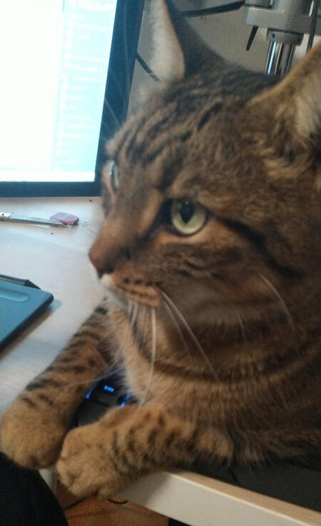 the name of my sister's cat is tiger and he just loves me cuz I feed him ://